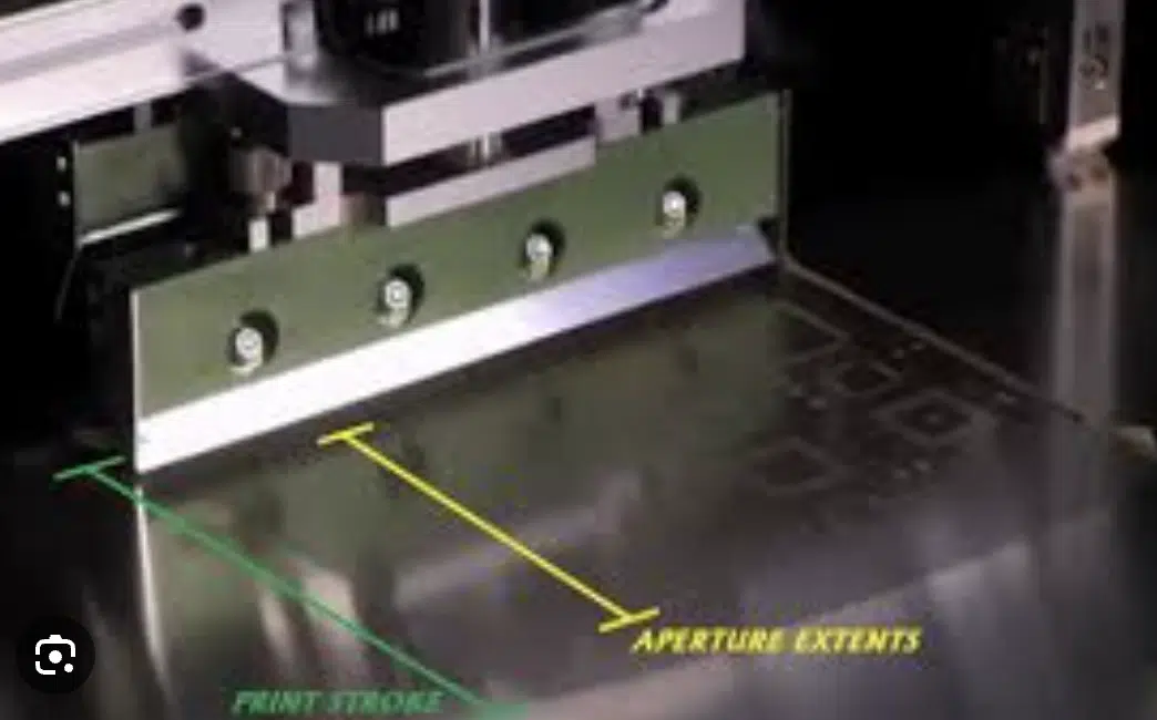 The squeegee spreads solder paste over the stencil. Imagine it as a tool that is used to push paste into stencil openings. Squeegees can be made from rubber or metal and move in a controlled way to ensure uniform distribution.